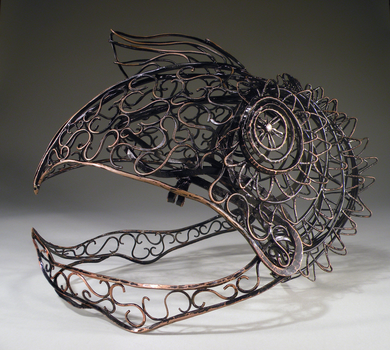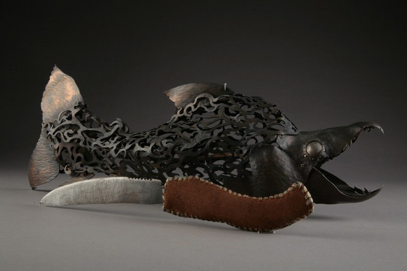 Copper, brass, steel, rawhide